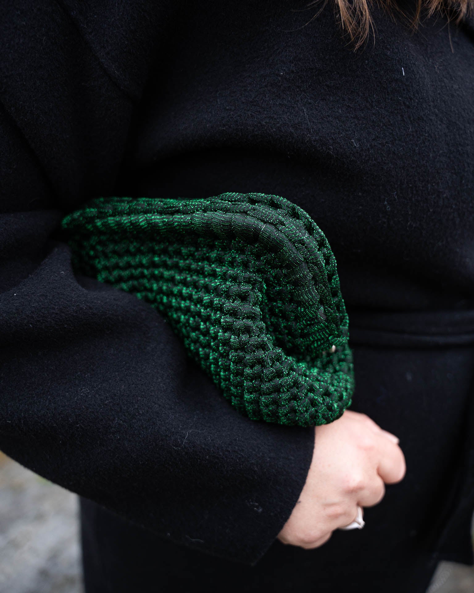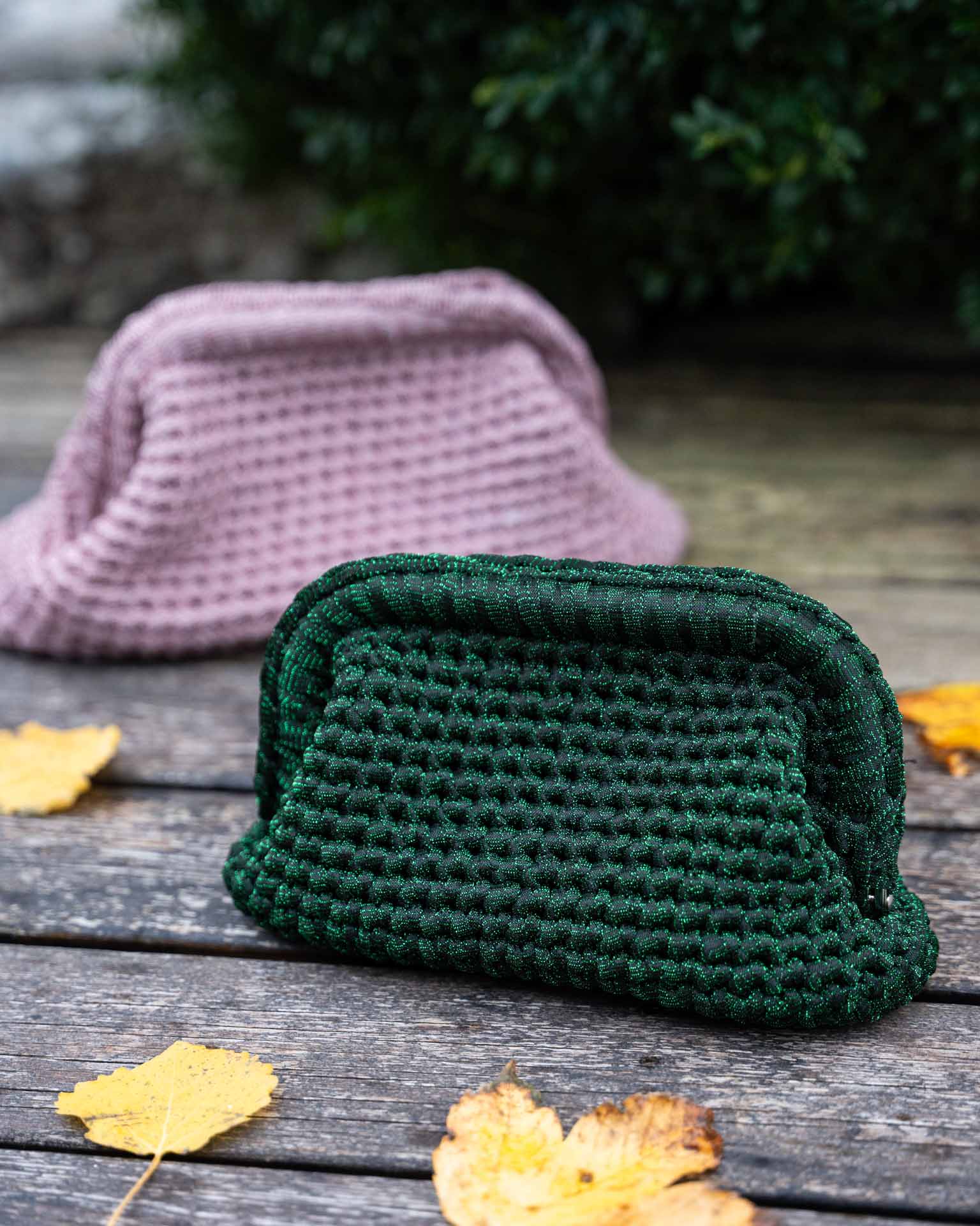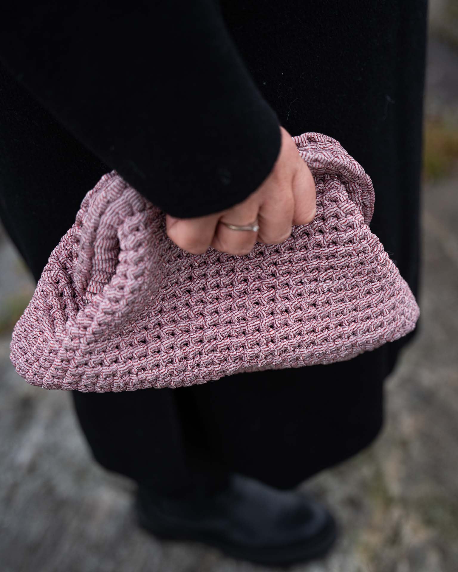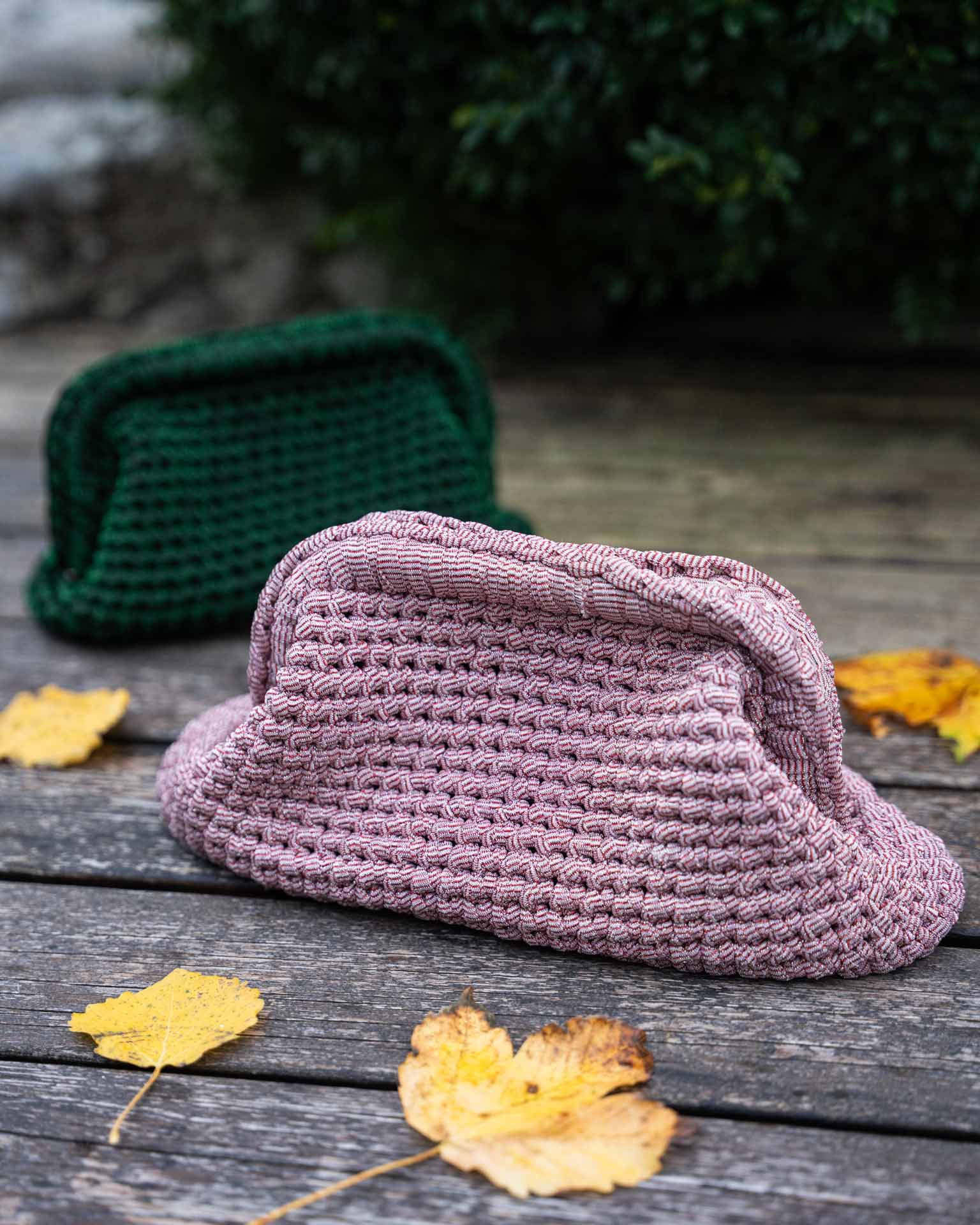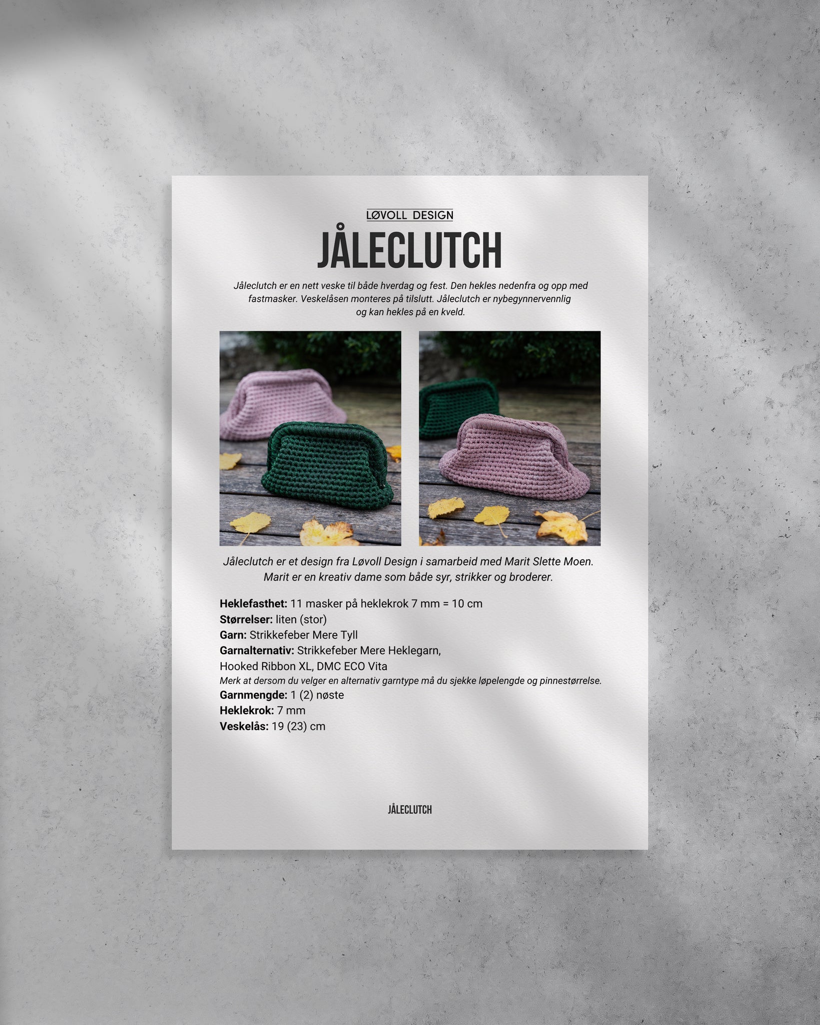 Jåleclutch er en nett veske til både hverdag og fest. Den hekles nedenfra og opp med fastmasker. Veskelåsen monteres på tilslutt. Jåleclutch er nybegynnervennlig og kan hekles på en kveld.