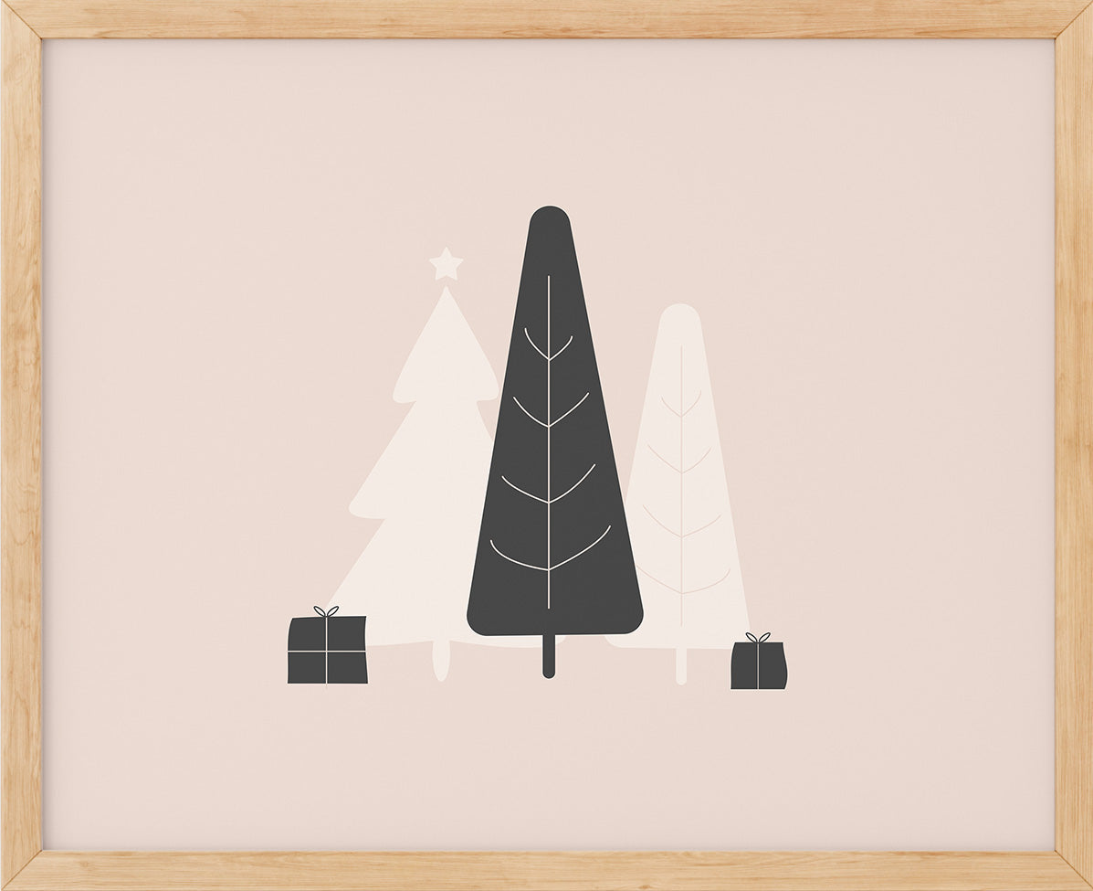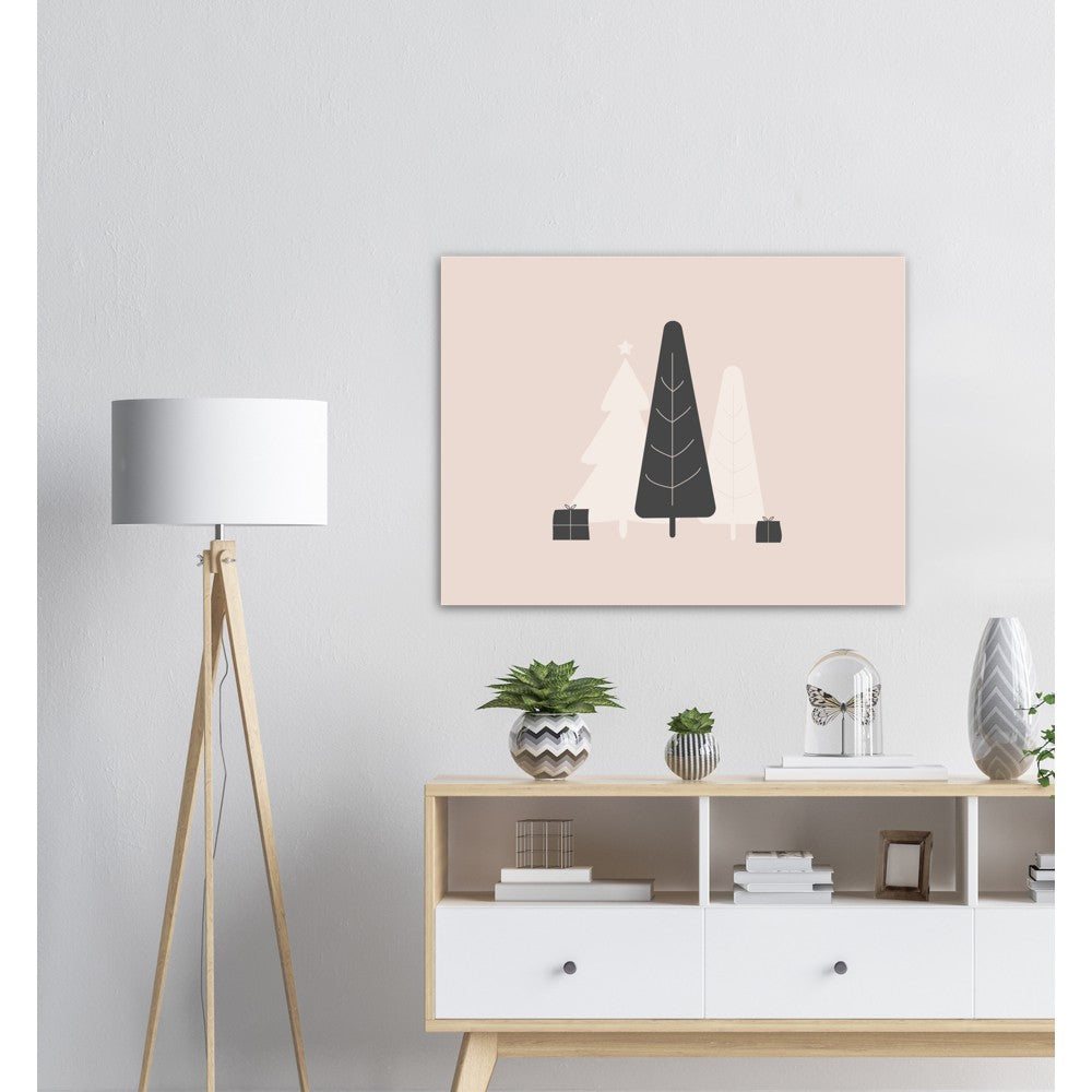 Grantær og pakker i enkel skandinavisk stil.
