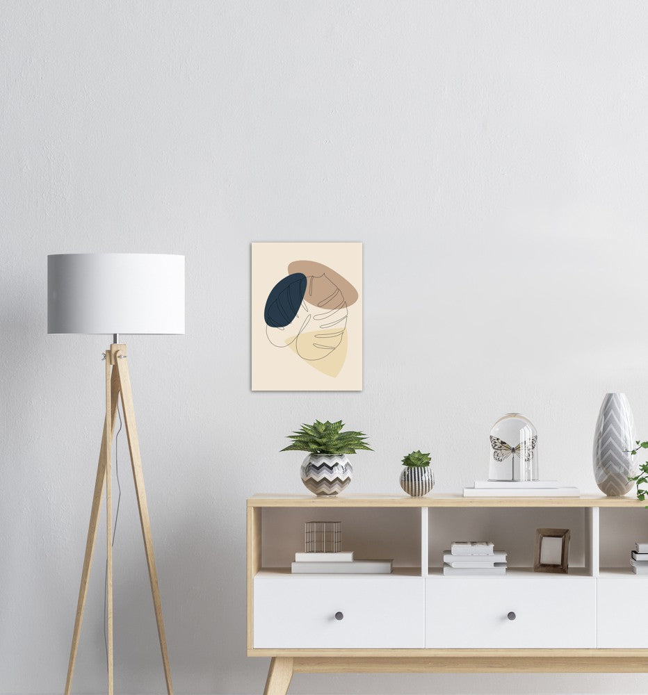 Abstrakt Line Art av et Monstera blad med jordtone palett.