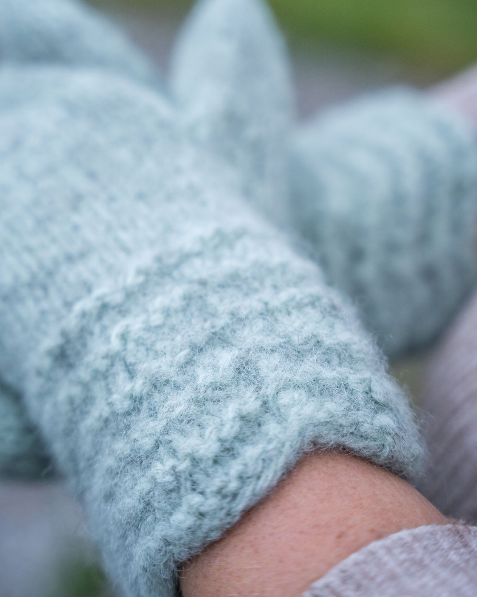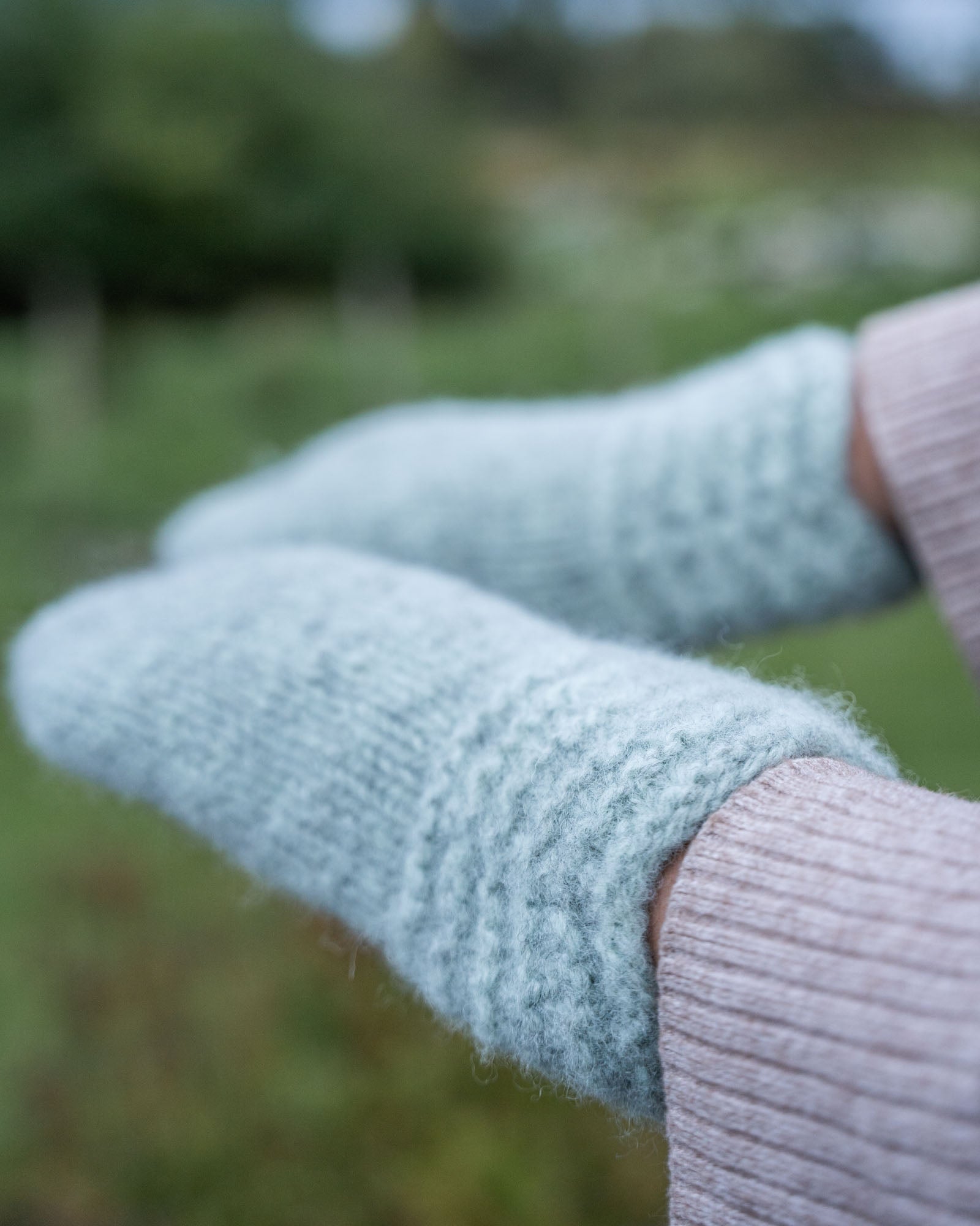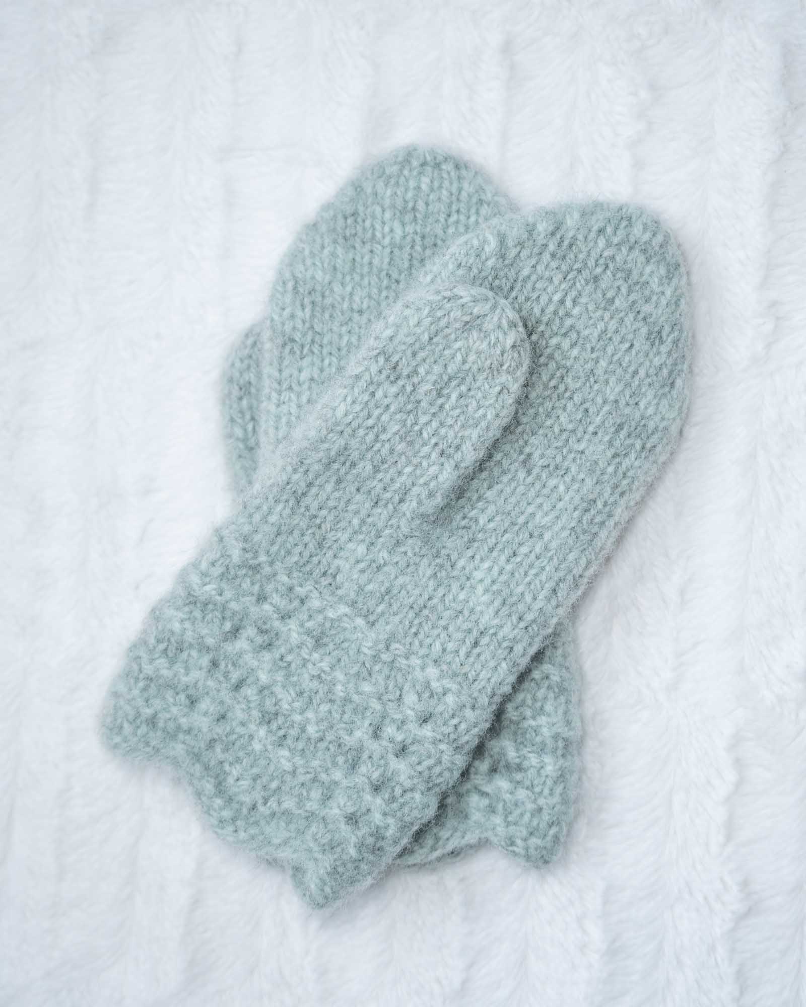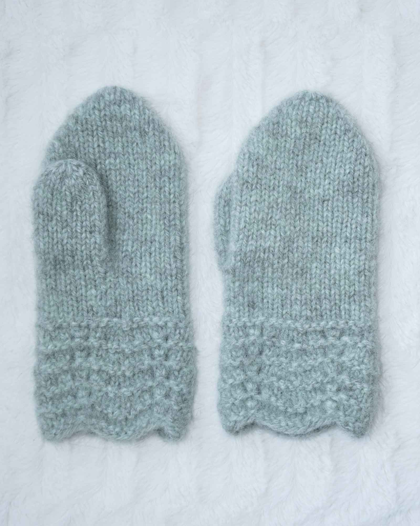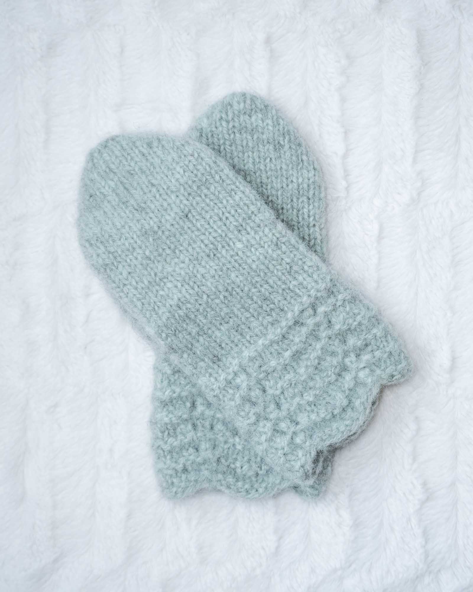 Karoline tovavotter er en varm og fin vott med strukturmønster på vrangborden.
